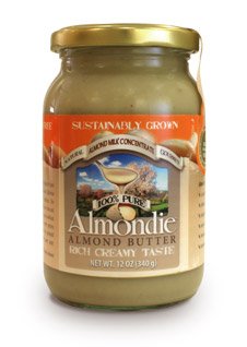 Enjoy the smooth, nutty taste and numerous health benefits of Almondie Almond Butter - the only 100% pure almond butter on the market that is totally raw and unpasteurized! Almondie is made from high grade, sustainably grown California almonds that are peeled without any heat or chemicals, removing acid and enzyme inhibitors for easy digestion. Almonds are then ground raw using our unique cold-press process without the addition of any sugar or additives to preserve the nutritional value of raw almonds. Almondie can be eaten as a creamy spread or can be used or as an almond milk concentrate - simply add water to make the purest naturally sweet almond milk beverage available today! Almondie's tremendous health qualities are especially beneficial for those with digestion problems, the elderly, pregnant and nursing mothers, colicky babies, and as a nutritional supplement for bottle-fed babies.